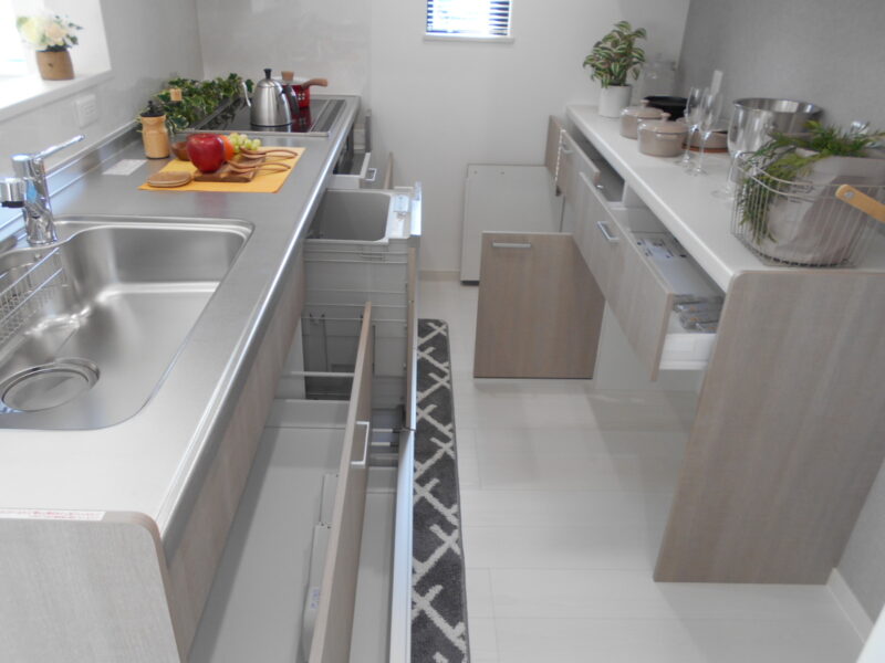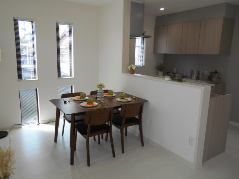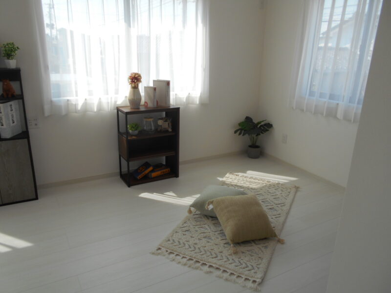 4台分のコンクリート敷き駐車場にカーポート2台分を設置してますので、費用の掛かる駐車場工事の負担もありません。またLDKには寒冷地仕様のズバ暖エアコンも設置済みです。新品で馬力のあるエアコンを差し上げます。当社では全部屋の照明やレースカーテン(一部ブラインド)が付いての建売住宅の為、必要最低限のご準備でお住まいいただけます。