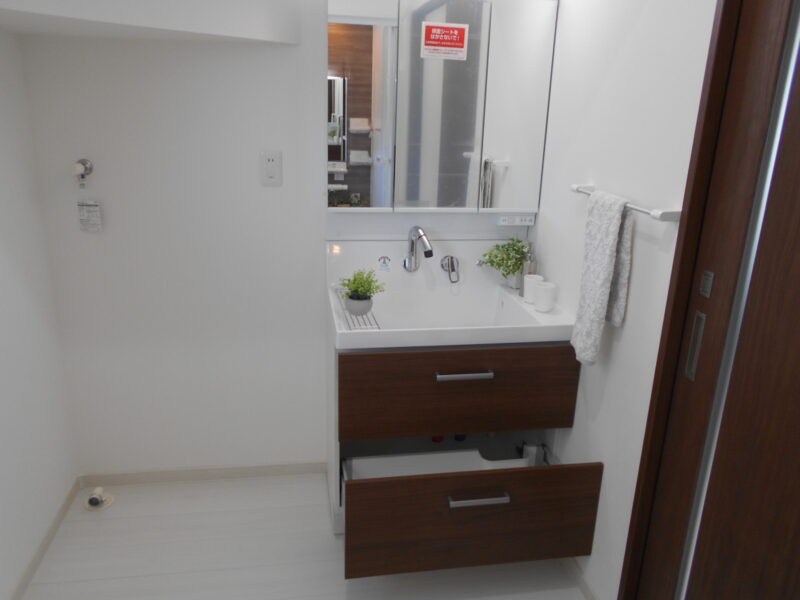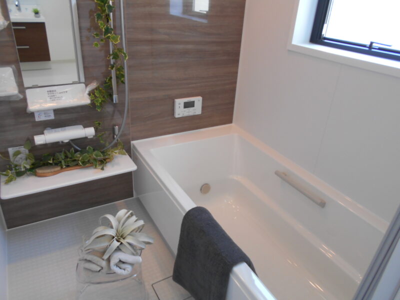 独立したダイニングスぺースが確保でき、LDKの隣には和室を設けリビングと一体利用することが出来る間取りで帖数以上に広く感じて使用することができます。お風呂には浴室換気乾燥機を備えゆったり1坪の広さがあり、洗面室もこちらも1坪と余裕のある広さがあります。